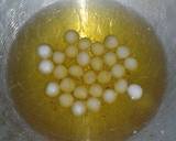 Tuang air mendidih sedikit demi sedikit kedalam tepung tapioka. sisihkan bagian yang sudah terkena air dan lanjut tuang pada bagian tepung yang belum terkena air. (Jangan diaduk2 ya cukup sisihkan aja.. supaya nanti bisa mengembang). Setelah tepung terkena air semua diamkan hingga hangat / tidak panas bila dipegang.